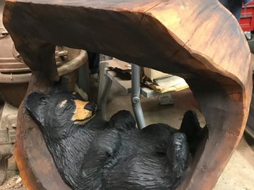 Black Walnut, Side table with a nestling cub beside you. Can work with almost any furniture setup.
